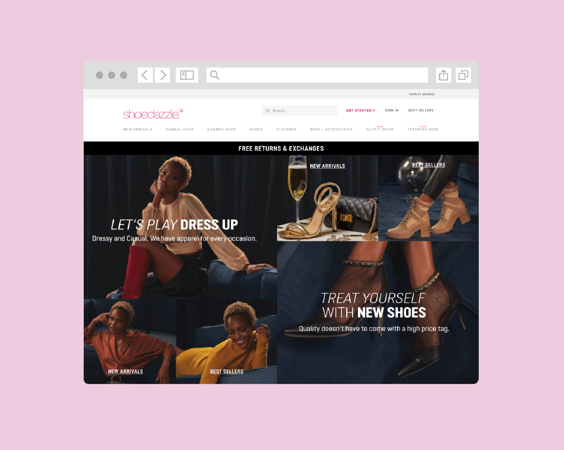 TechStyle Fashion Group is an online global fashion company that has a portfolio of six direct-to-consumer brands including Fabletics, Savage x Fenty, Yitty, Fabkids, Justfab and Shoedazzle. I worked in the global fashion brand’s (Shoedazzle & Justfab) acquisition team to create landing page designs as well as various advertisement designs for social platforms.